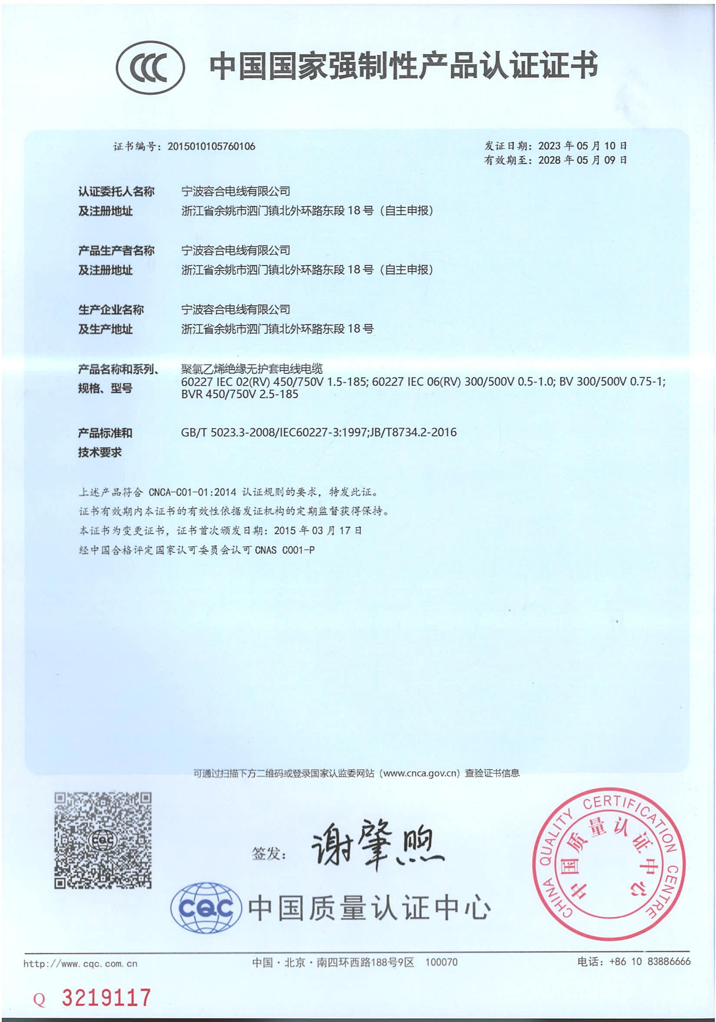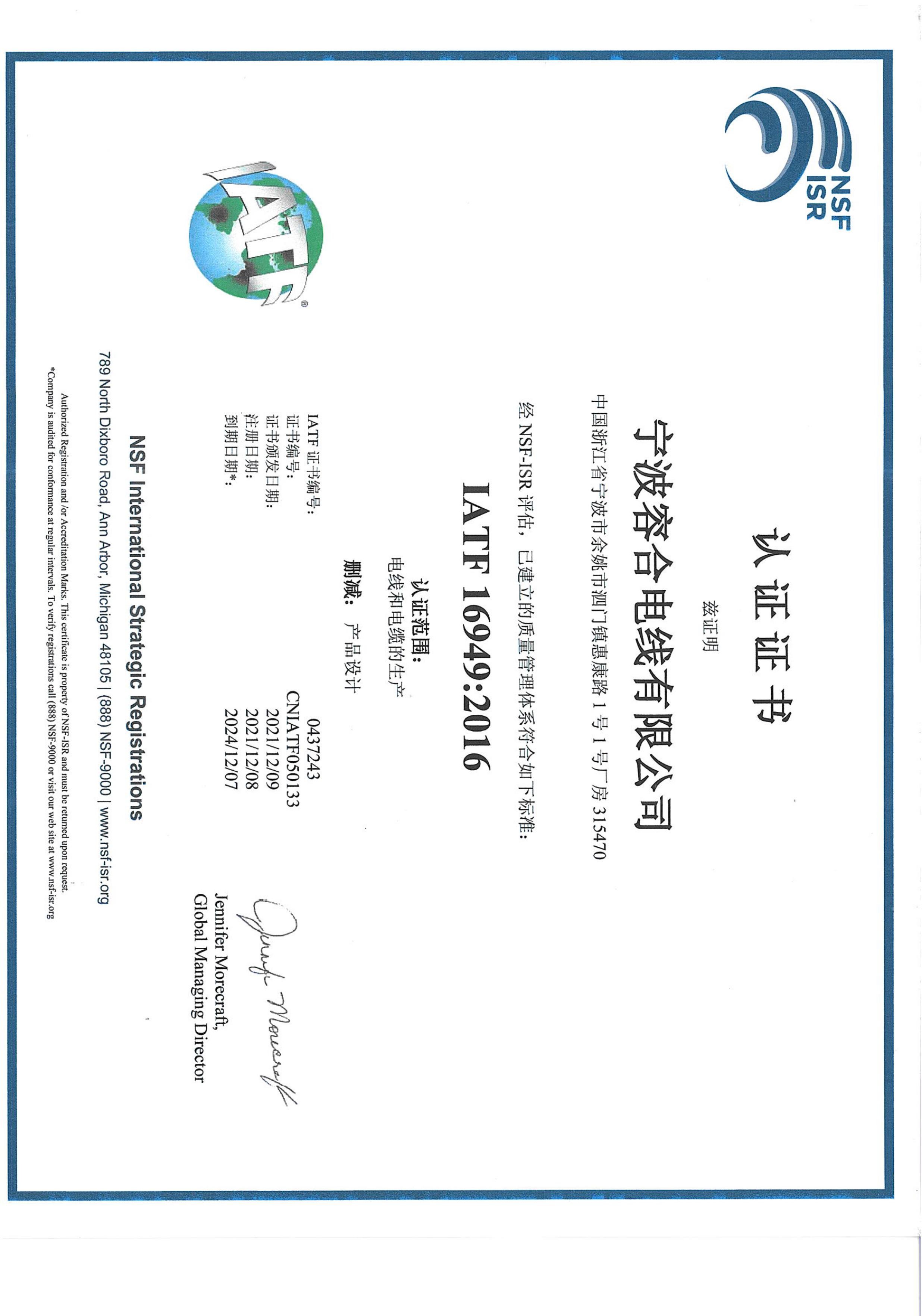 (寧波容合電線有限公司)