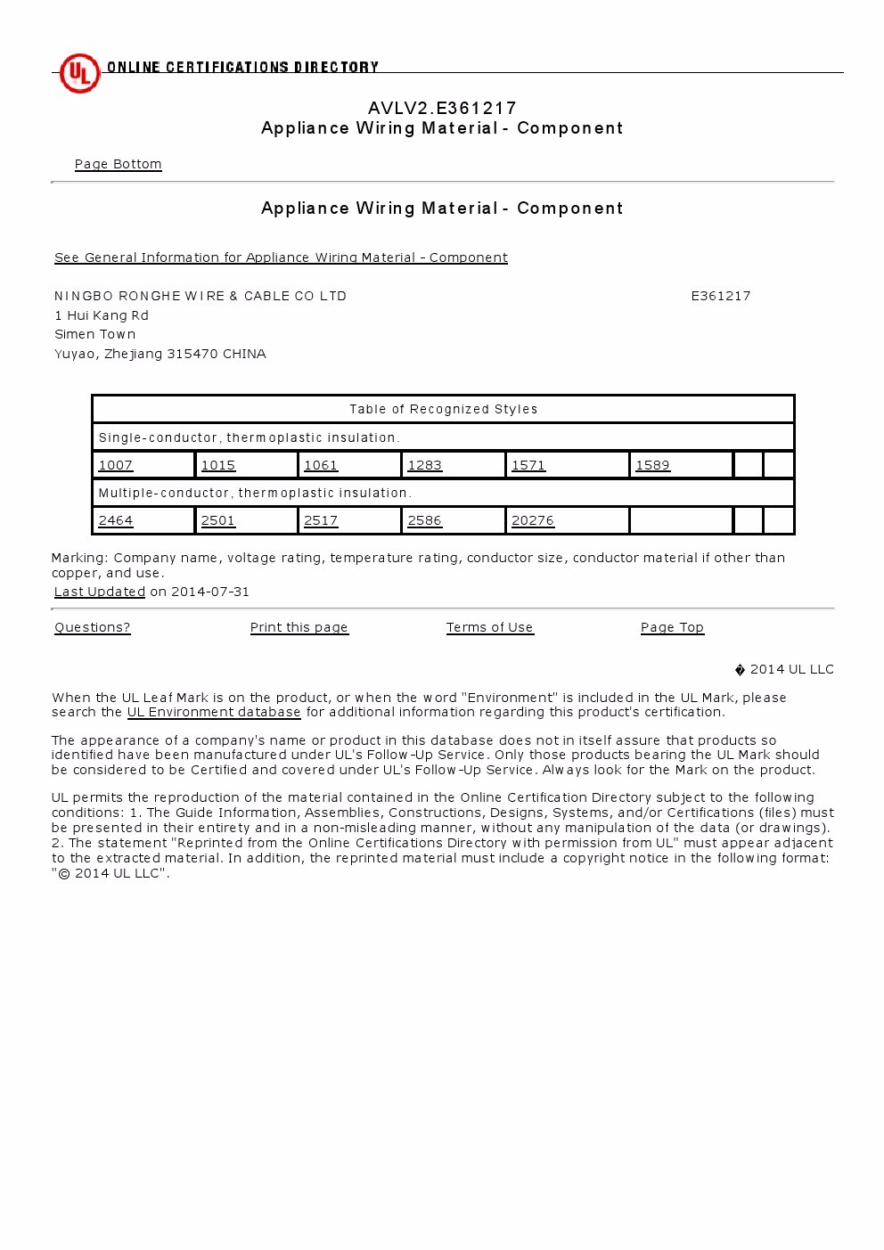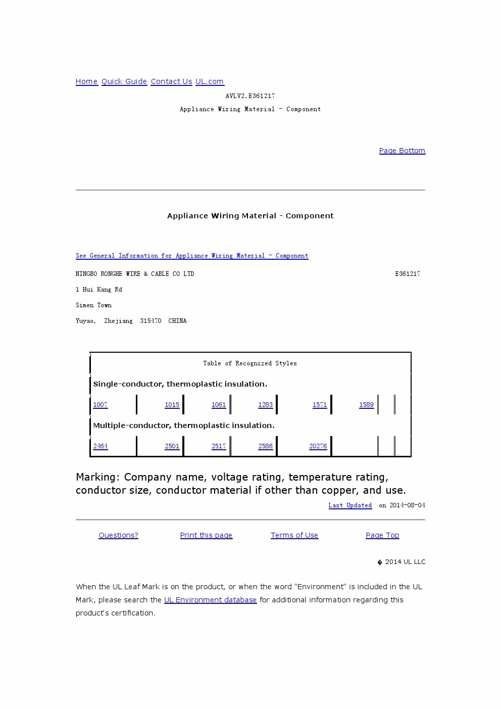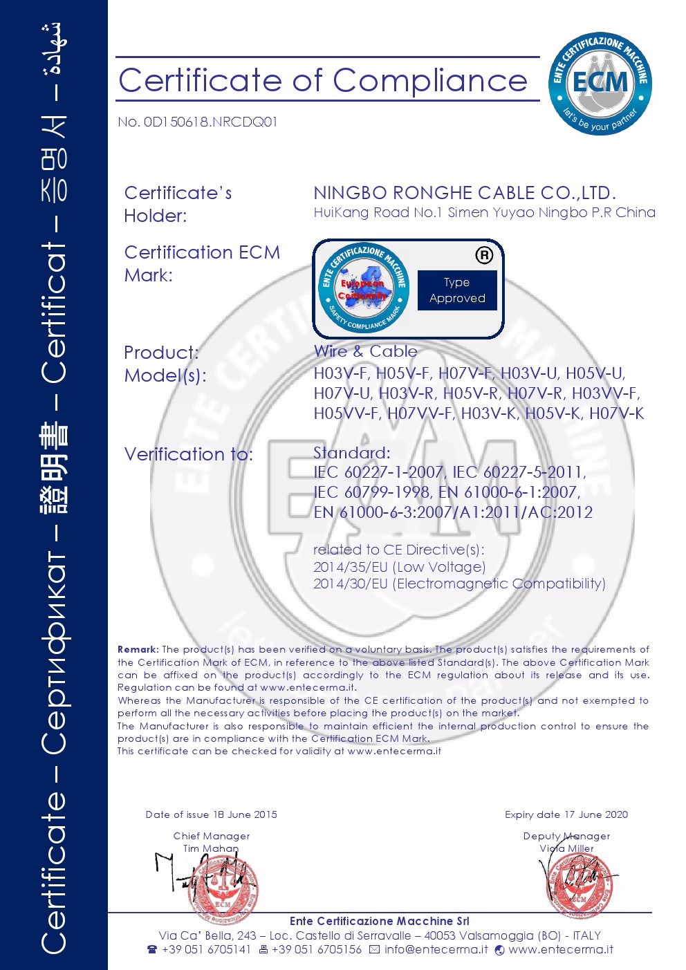NingBo Ronghe Wire & Cable Co.,Ltd.